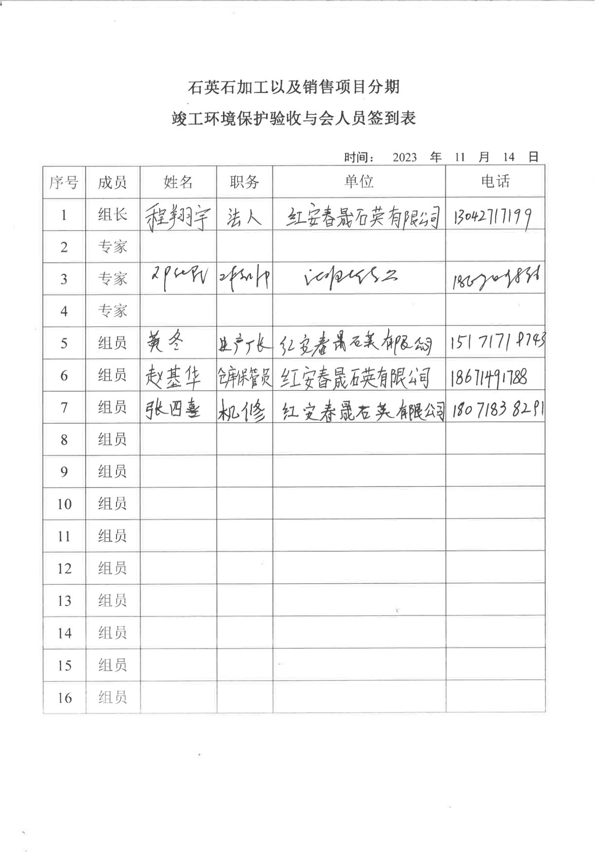 20231114日,紅安春晟石英有限公司在黃岡市紅安縣主持召開(kāi)了《石英石加工以及銷(xiāo)售項(xiàng)目分期竣工環(huán)境保護(hù)驗(yàn)收監(jiān)測(cè)報(bào)告表》技術(shù)評(píng)估會(huì)。
