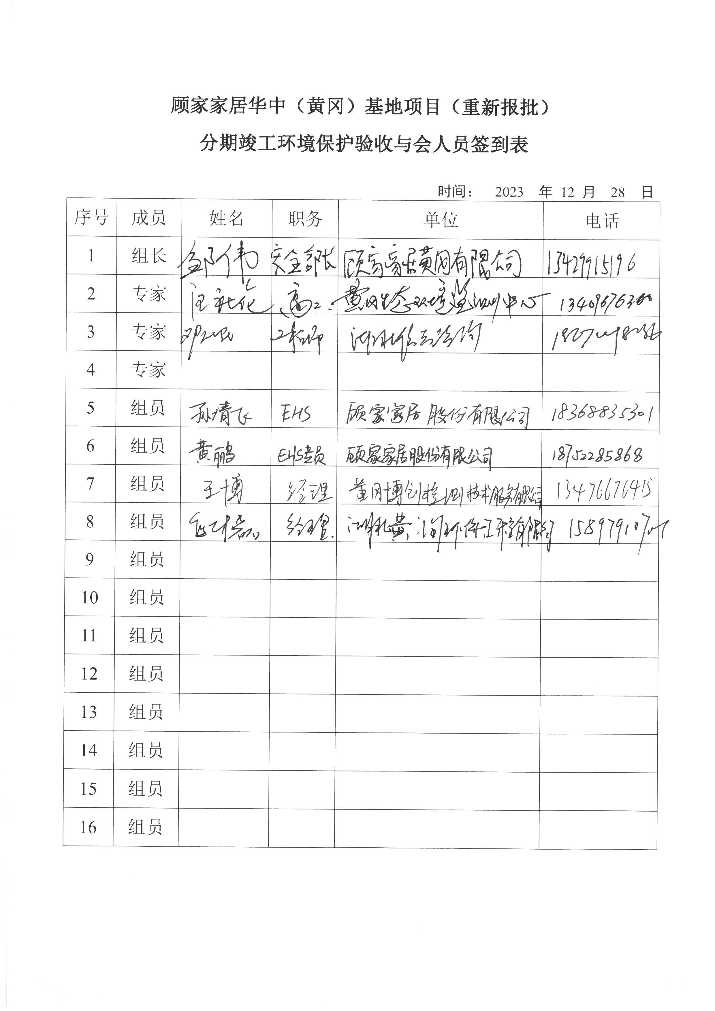 2023年12月28日,顧家家居黃岡有限公司在黃岡市主持召開了《顧家家居華中(黃岡)基地項目(重新報批)分期竣工環(huán)境保護驗收監(jiān)測報告表》技術(shù)評估會。