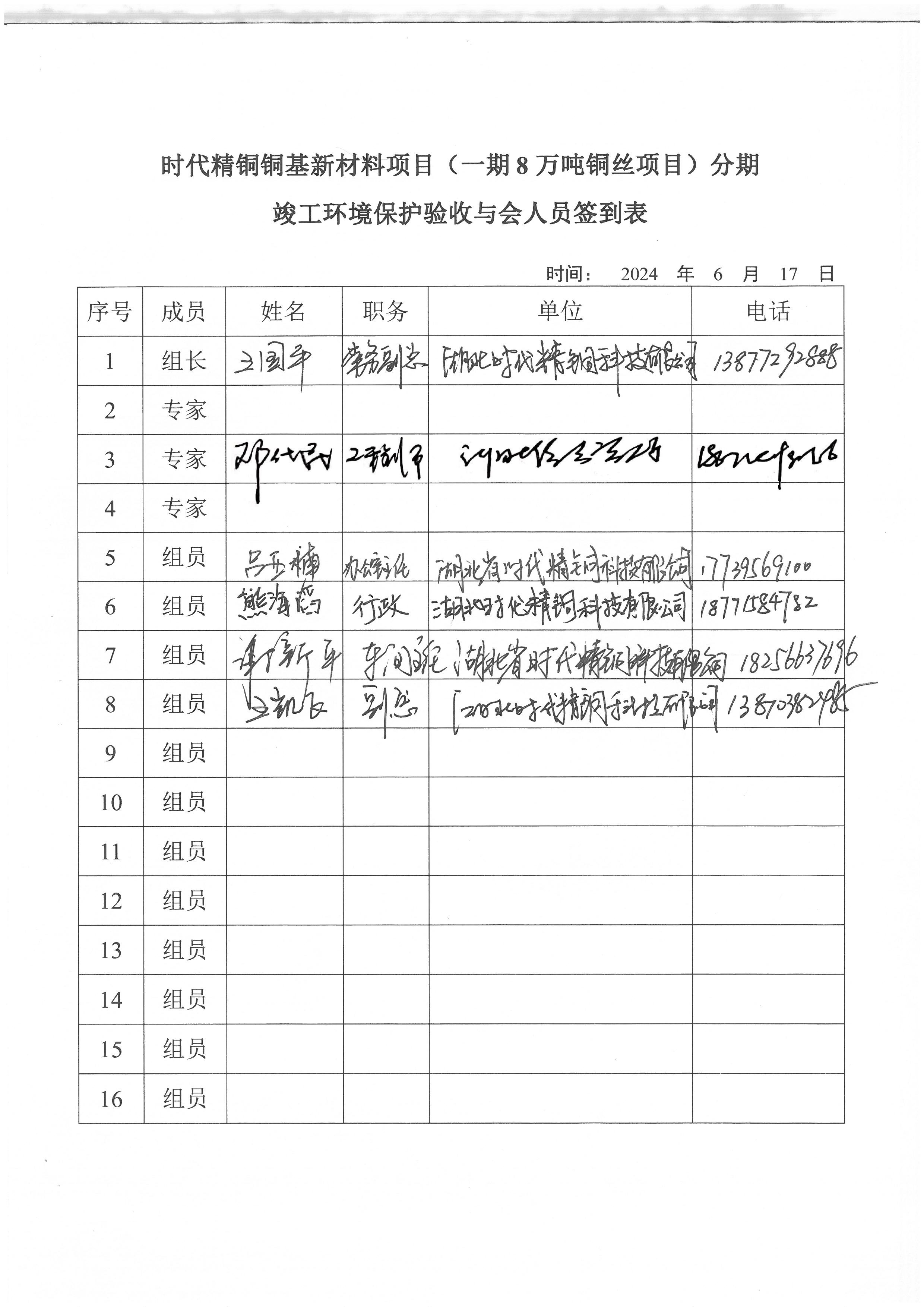 2024年6月17日,湖北省時代精銅科技有限公司在黃岡市黃梅縣主持召開了《時代精銅銅基新材料項目(一期8萬噸銅絲項目)分期竣工環(huán)境保護驗收監(jiān)測報告表》技術(shù)評估會。