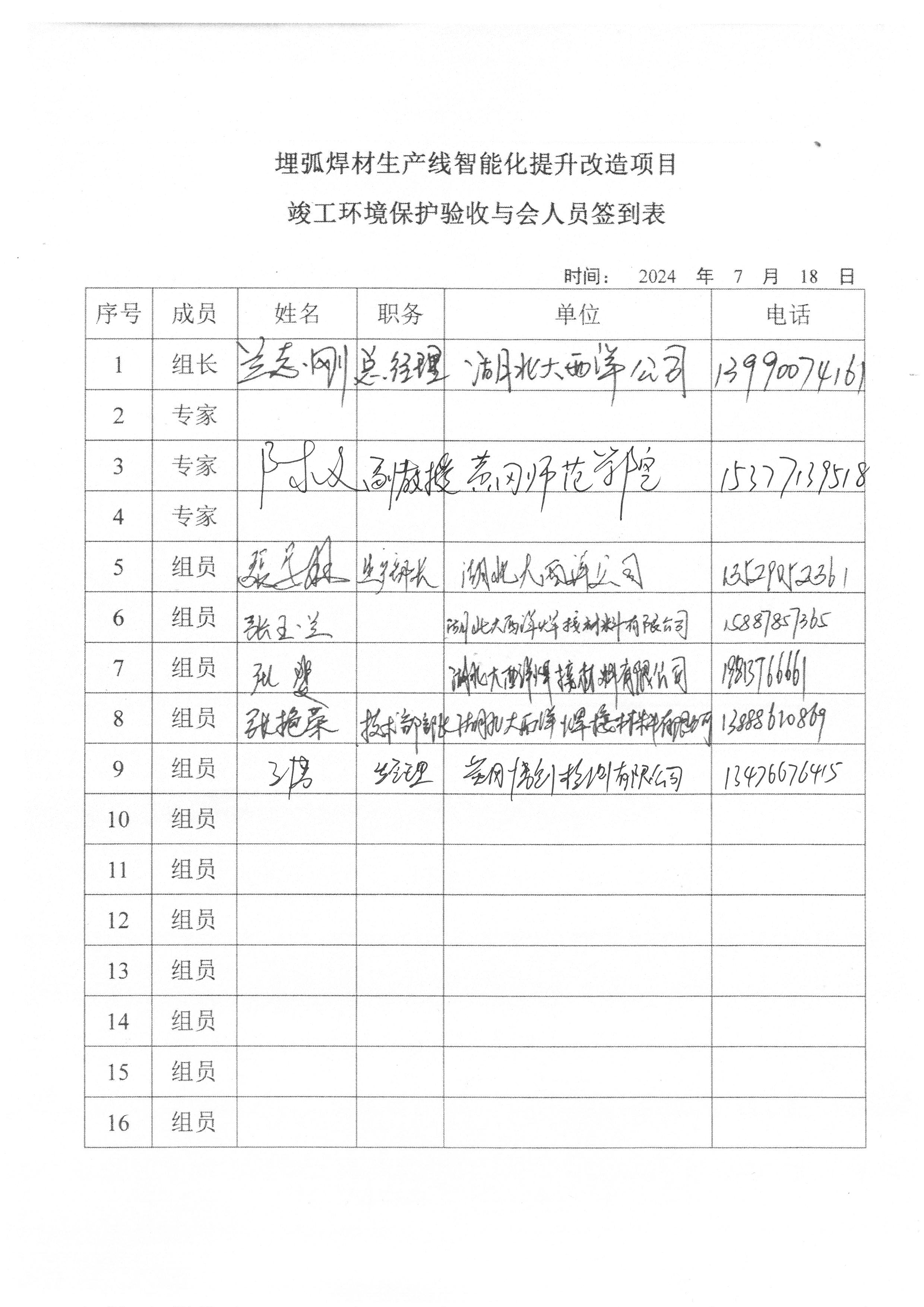 2024年7月18日,湖北大西洋焊接材料有限公司在黃岡市團(tuán)風(fēng)縣主持召開了《埋弧焊材生產(chǎn)線智能化提升改造項(xiàng)目竣工環(huán)境保護(hù)驗(yàn)收監(jiān)測報(bào)告表》技術(shù)評估會。