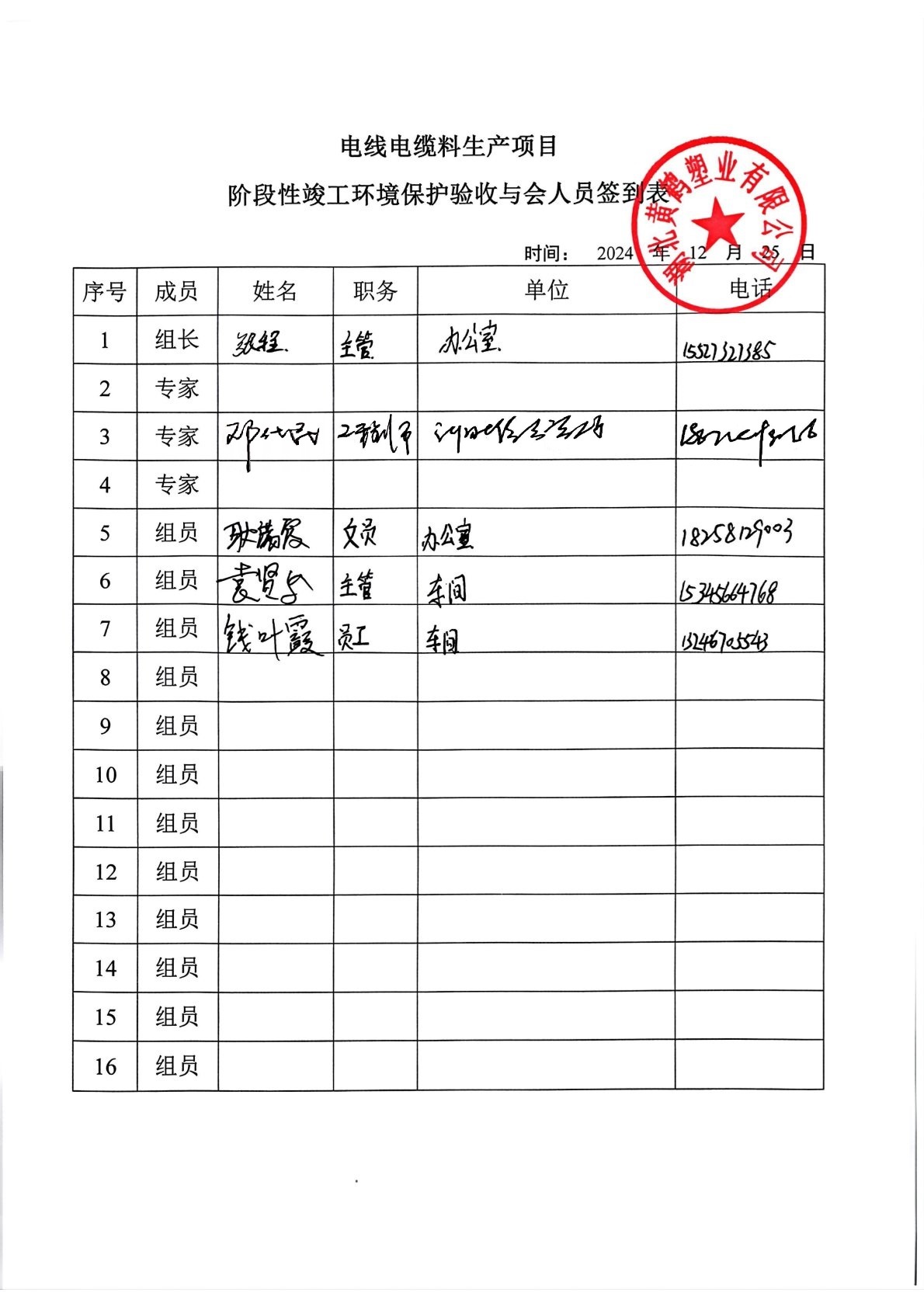 2024年12月25日,湖北黃鶴塑業(yè)有限公司在黃岡市黃梅縣主持召開了《電線電纜料生產(chǎn)項目階段性竣工環(huán)境保護驗收監(jiān)測報告表》技術(shù)評估會。