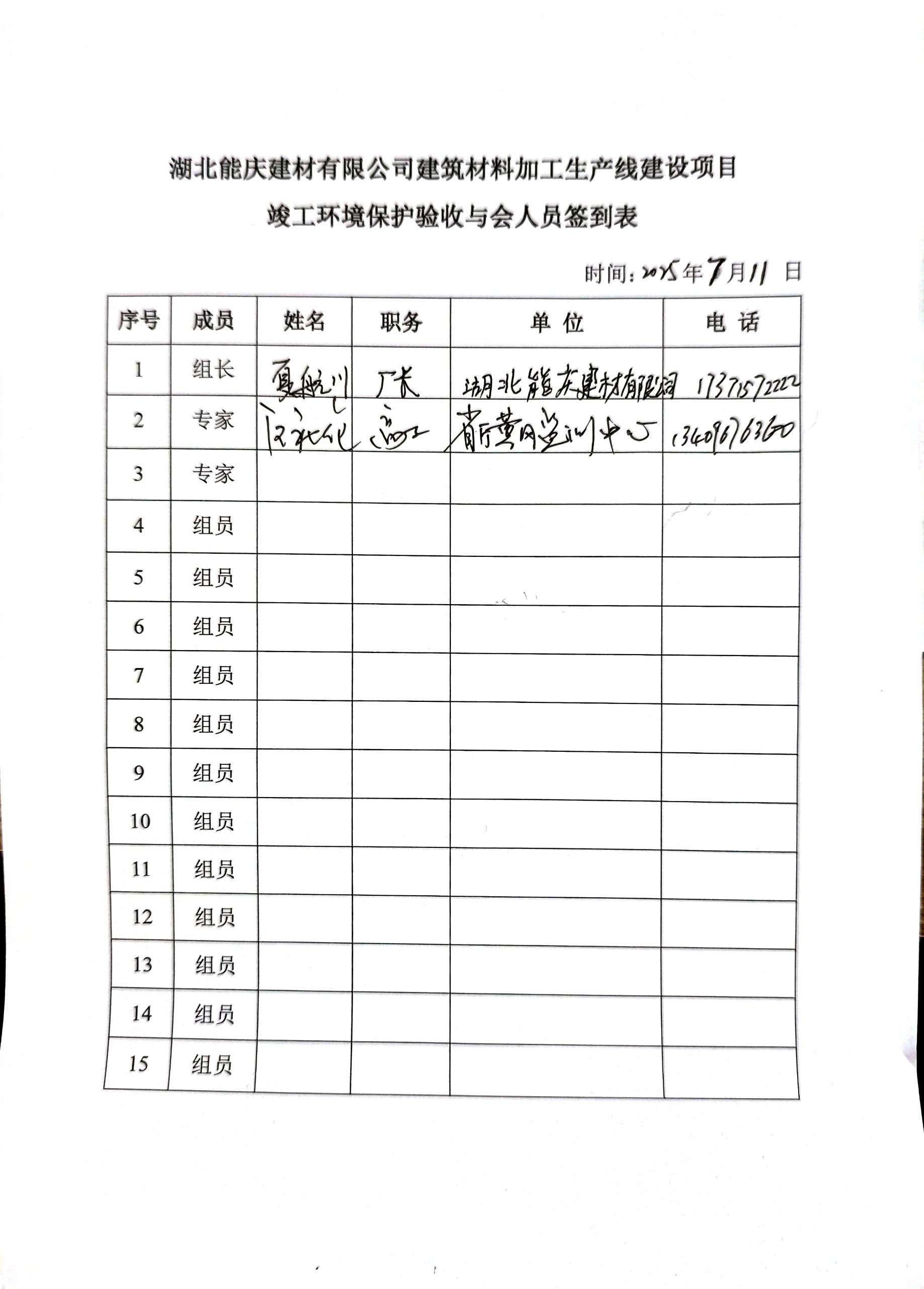 2025年7月11日,湖北能慶建材有限公司在黃岡市黃州區(qū)主持召開了《湖北能慶建材有限公司建筑材料加工生產(chǎn)線建設項目竣工環(huán)境保護驗收監(jiān)測報告表》技術(shù)評估會。