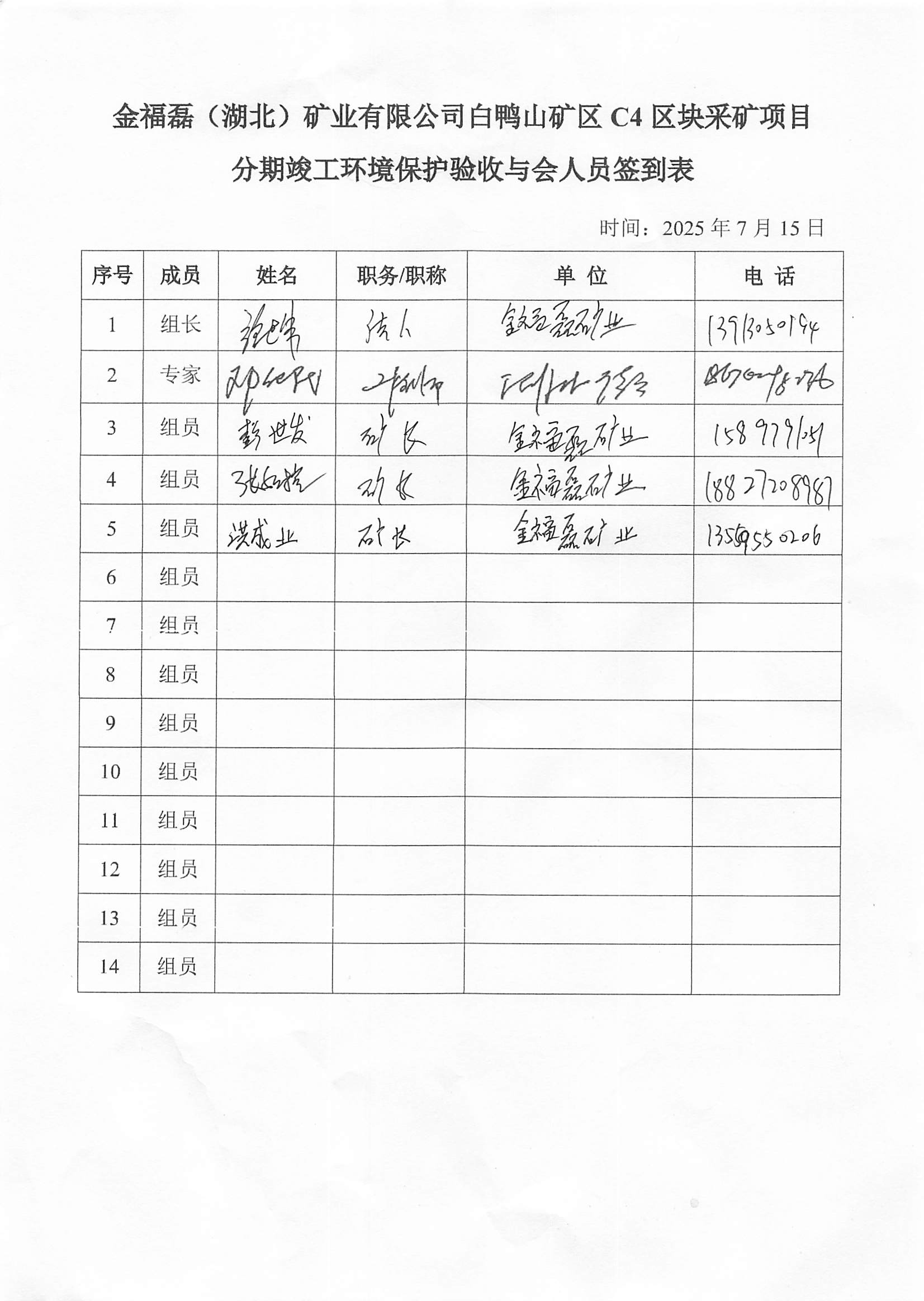 2025年7月15日,金福磊(湖北)礦業(yè)有限公司在麻城市主持召開(kāi)了《金福磊(湖北)礦業(yè)有限公司白鴨山礦區(qū)C4區(qū)塊采礦項(xiàng)目竣工環(huán)境保護(hù)驗(yàn)收監(jiān)測(cè)報(bào)告表》技術(shù)評(píng)估會(huì)。